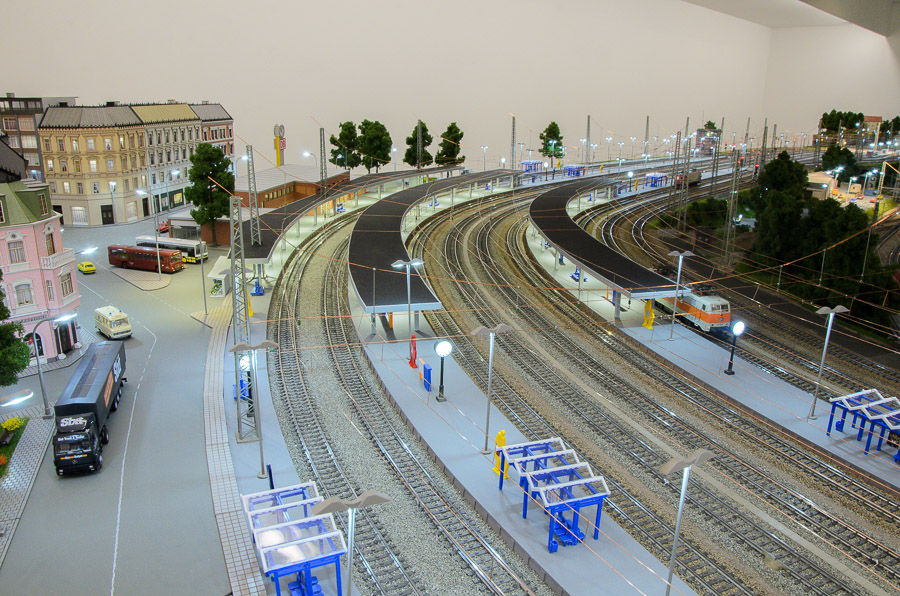 Der große Hbf mit seinen 9 langen Gleisen, einem großzügigem Gleisvorfeld und einer großen Abstellanlage für lange Züge